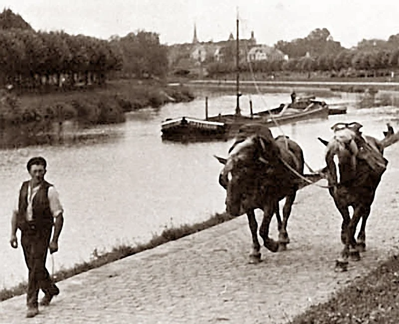 As an essentially Dutch town, Emden is crisscrossed by canals, and had over thirty bridges. And like the canal network in Holland—which connected most towns and was a staggering 425 miles (685 kms) long and employed 364 treckshuiten—the main form of transport in Emden is by barge—treckshuit.